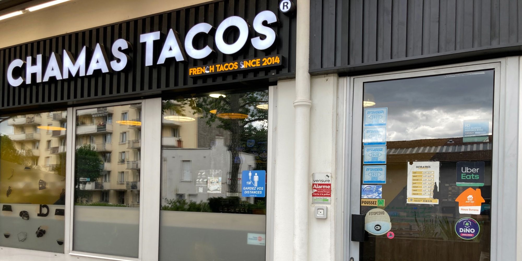 Moins de 24 heures après les faits, les portes du restaurant "Chamas Tacos", à Villeurbanne, sont toujours fermées. À l'intérieur, on aperçoit un grand désordre et des traces de sang au sol, stigmates de la lutte qui a opposé un employé du snack à un braqueur cagoulé, venu faire main basse sur la caisse à trois heures et demie du matin.