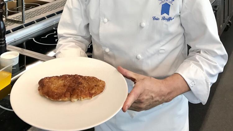 Faites chauffer une poêle avec le beurre clarifié ou l’huile, faites cuire les escalopes pendant 3 minutes environ sur chaque face. Attention une température trop chaude risquerait de brûler la chapelure.