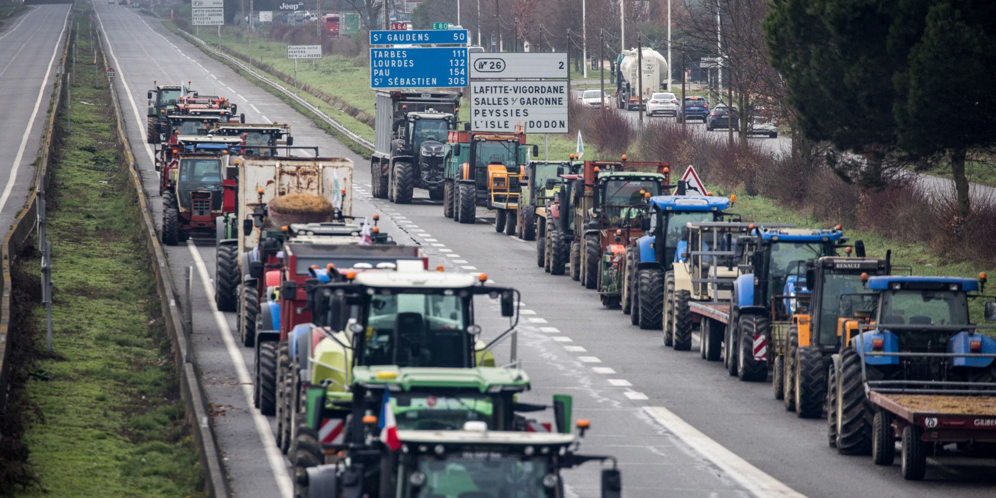 Les actions d'agriculteurs se poursuivent jeudi sur les autoroutes, les rocades et les ronds-points, perturbant la circulation dans tout le pays, y compris aux portes de Paris avec une opération-escargot menée par des tracteurs sur la N12 dans les Yvelines. Sur l'A64, près de Carbonne, le mouvement ne faiblit pas.