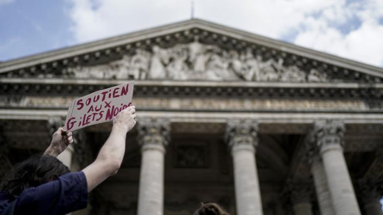 Action surprise des Gilets Noirs qui occupent actuellement le Panthéon et réclament la régularisation des sans-papiers et un RDV avec le Premier Ministre Édouard Philippe. #GiletsNoirs#Pantheon#Paris