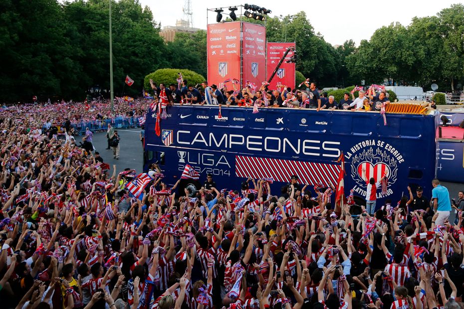 Après avoir traversé une partie de la ville sur un bus à impériale, les joueurs de l'Atlético sont montés un à un sur la scène installée à côté de la fontaine. Outre Simeone, les autres hommes du titre, comme le gardien belge Thibaut Courtois ou le buteur espagnol Diego Costa, ont également recueilli les faveurs des dizaines de milliers de supporters.