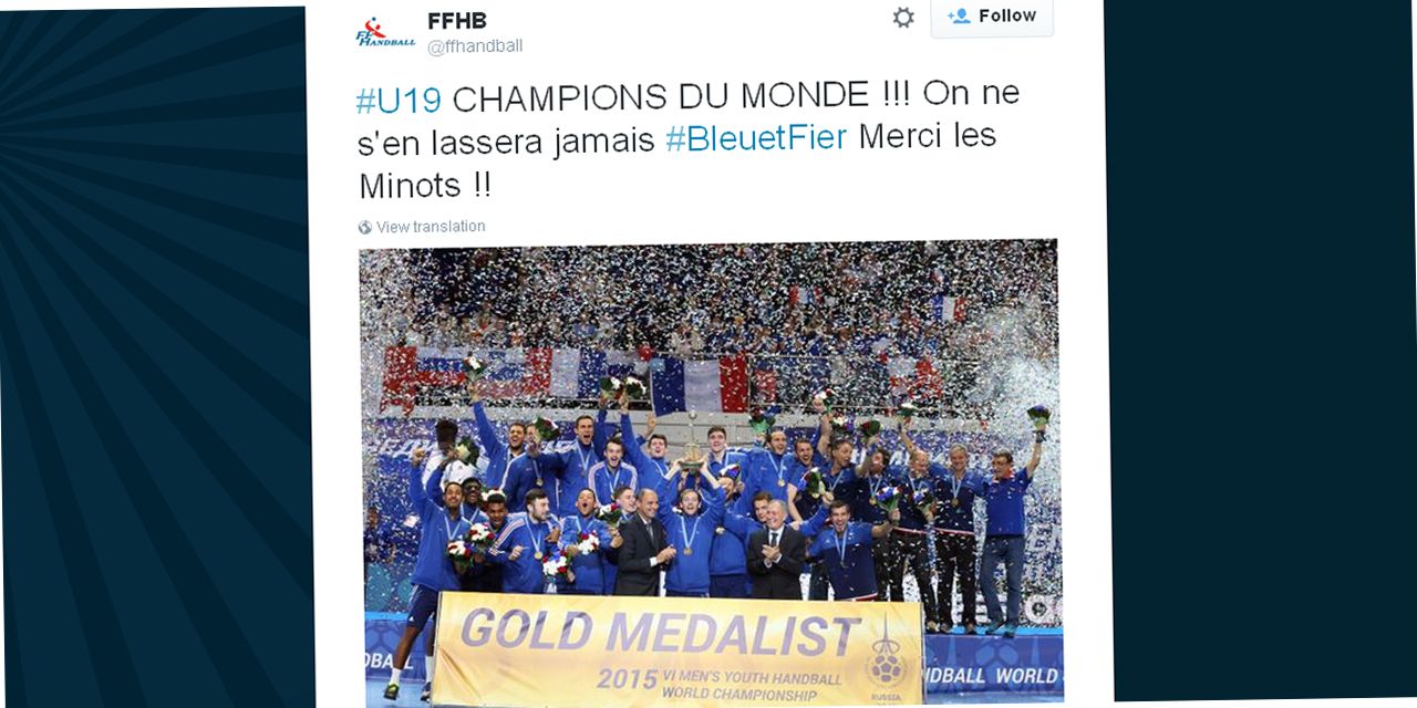 Felicitations les jeunes! Champions du Monde U19!! @ffhandball pic.twitter.com/Nn8qWfCCyN