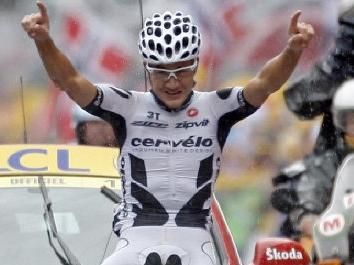 Heinrich Haussler a remporté en solitaire la treizième étape du Tour de France entre Vittel et Colmar. L'Allemand a distancé sur la fin de parcours Sylvain Chavanel au terme de 200 kilomètres courus dans le froid, sous la pluie et le brouillard.Cette fois il a levé les bras. Deuxième de Milan-San Remo et du Tour des Flandres cette année, Heinrich Haussler, le sprinteur de la Cervelo, a effectué un grand numéro vendredi sur les routes de la 13e étape du Tour pour remporter sa première étape sur la Grande Boucle. Derrière, Rinaldo Nocentini reste conserve son maillot jaune, tandis que le statu quo continue chez les favoris.La première banderille est portée par Christophe Moreau, qui, dès le troisième kilomètre, fait le trou en compagnie de six hommes dont Jens Voigt (Saxo Bank) et Sylvain Chavanel (Quick Step). L'écart ne passant pas la minute, ce dernier décide de prendre la poudre d'escampette en compagnie de Heinrich Haussler (Cervelo) et de Ruben Perez (Euskatel Euskadi). Les trois hommes comptent jusqu'à neuf minutes d'avance sur le peloton. Chavanel lâche prisePour les hommes de tête, la principale difficulté de la journée, le col du Platzerwasel, est fatal à Ruben Perez tandis que Chavanel et Haussler passent au sommet avec trois minutes trente d'avance sur un peloton, délesté notamment de Denis Menchov, décidément bien à la peine sur ce Tour.Tandis que Brice Feillu (Agritubel) et Amets Txurruka (Euskatel Euskadi) se lancent à la poursuite des deux fuyards, Haussler dépose Chavanel au 44e kilomètre pour partir seul à la conquête de cette 13e étape. Impressionnant de puissance, le coureur de la Cervelo s'impose, en larmes, à Colmar quatre minutes devant Txurruka, qui devance Brice Feillu, qui grapille quelques places au général.