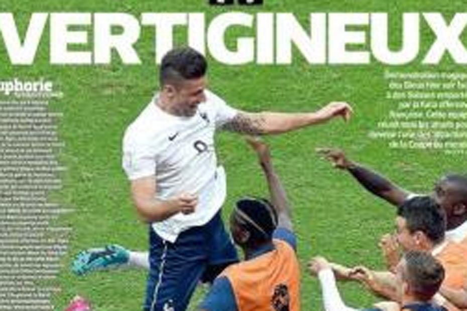 Les journaux français s’en sont donnés à cœur joie : "vertigineux" pour lLEquipe et son directeur de la rédaction Fabrice Jouhaud, le niveau affiché par les Bleus a provoqué "une euphorie proportionnelle à ce qu’ils ont montré : envie, engagement, générosité, plaisir et audace."