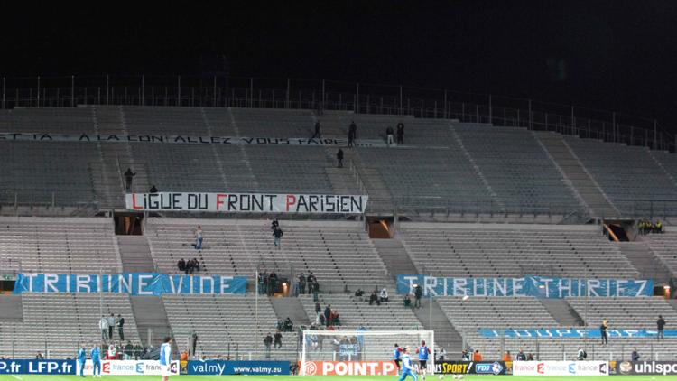 Très remontés contre la LFP, les supporters avaient renommé le virage nord "tribune vide" et "tribune Thiriez". Plus véhément, un message installé dans la partie haute du virage parlait de "coupe à la c..." et enjoignait les membres de la LFP à aller "se faire..." Enfin, l'acronyme LFP avait été rebaptisé "Ligue du front parisien".