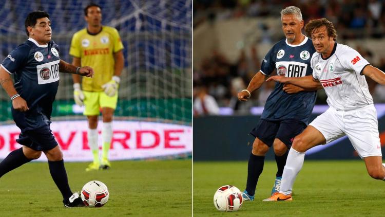 Un olivier en métal remis aux gagnants. Dans un stade où régnait une réelle ferveur, mais seulement à moitié plein, les joueurs ont fraternisé et semblaient particulièrement détendus, même si le jeu manquait parfois de vigueur. Le match s'est achevé sur un six-trois, l'équipe de Maradona, Roberto Baggio, Gianluigi Buffon ayant été battue par celle d'Alessandro Del Piero, David Trézéguet et Javier Zanetti. Le trophée, un olivier en métal argenté, a été remis aux gagnants.