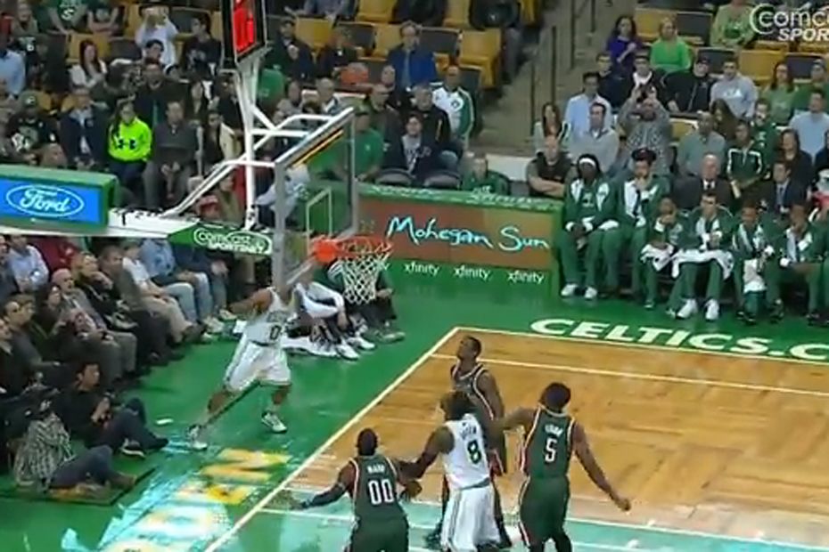 L'arrière des Boston Celtics, Avery Bradley, a inscrit un panier exceptionnel, mardi, lors de la victoire de son équipe face aux Milwaukee Bucks au TD Garden (108-100). Après un "air ball" de Jared Sullinger, l'ancien joueur de l'Université du Texas s'est saisi du cuir et a marqué un panier à la toute fin de la possession, avec un tir venu de derrière le plexiglas. Grâce à ce succès, le huitième de la saison en 20 matches, les "Celts" s'installent à la huitième place de la conférence Est, avec un bilan de 8 victoires-12 défaites. Milwaukee est dernier (3 v.-14 d.).