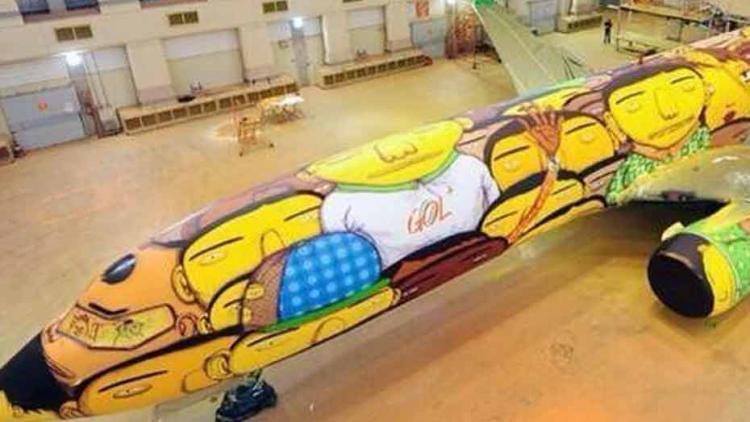 15 jours de travail pour redécorer l'avion. Les joueurs brésiliens pourront difficilement passer inaperçus pendant la prochaine Coupe du monde de football (12 juin - 13 juillet). Pour rallier les différentes villes pendant le Mondial, la sélection brésilienne a choisi un Boeing 737-800 totalement relooké. Deux artistes locaux ont mis 15 jours pour recouvrir le fuselage de visages aux traits volontairement grossis.