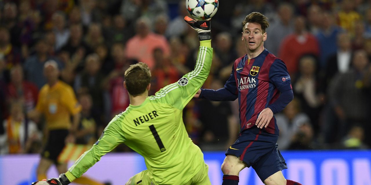— OptaJean (@OptaJean) May 6, 2015 90'+3 : Et de trois pour le Barça ! Lancé à la limite du hors-jeu par Messi, Neymar s'en va battre Neuer d'une frappe à ras de terre, entre les jambes. Barça-Bayern : 3-0