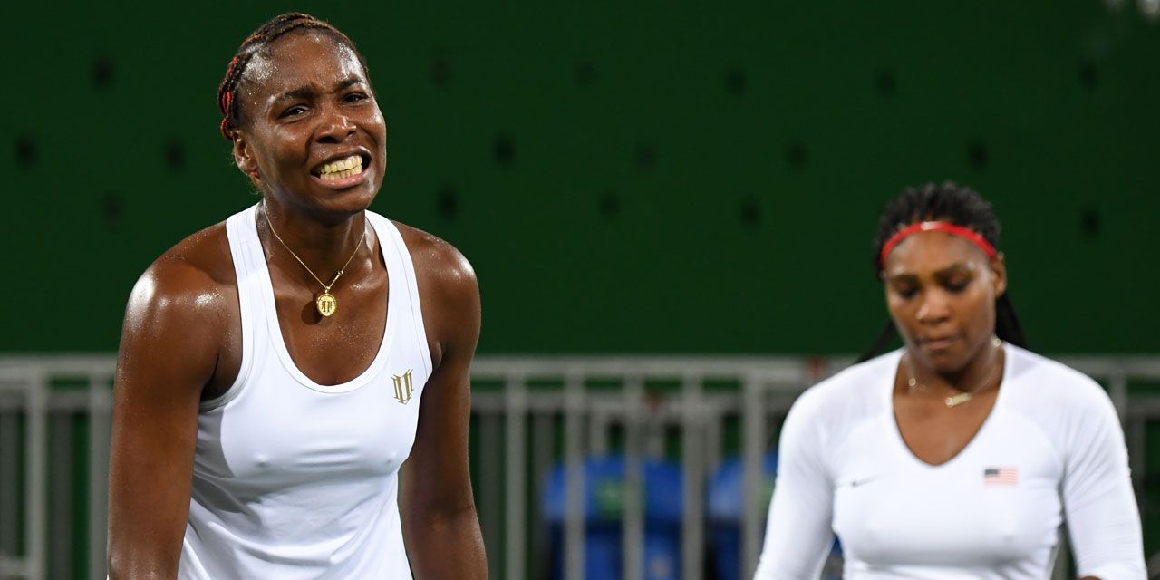 Affaiblie par un virus, Venus Williams s'était déjà inclinée d'entrée la veille en simple, face à la Belge Kirsten Flipkens (4-6, 6-3, 7-6). Les sœurs Williams étaient jusque-là invaincues en double dames aux JO, un tournoi qu'elles ont remporté à trois reprises (2000, 2008, 2012). Elles ne feront donc pas la passe de quatre à Rio.
