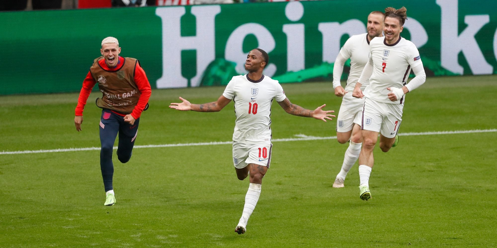 La joie de Raheem Sterling lors de la victoire en huitième de finale contre l'Allemagne.