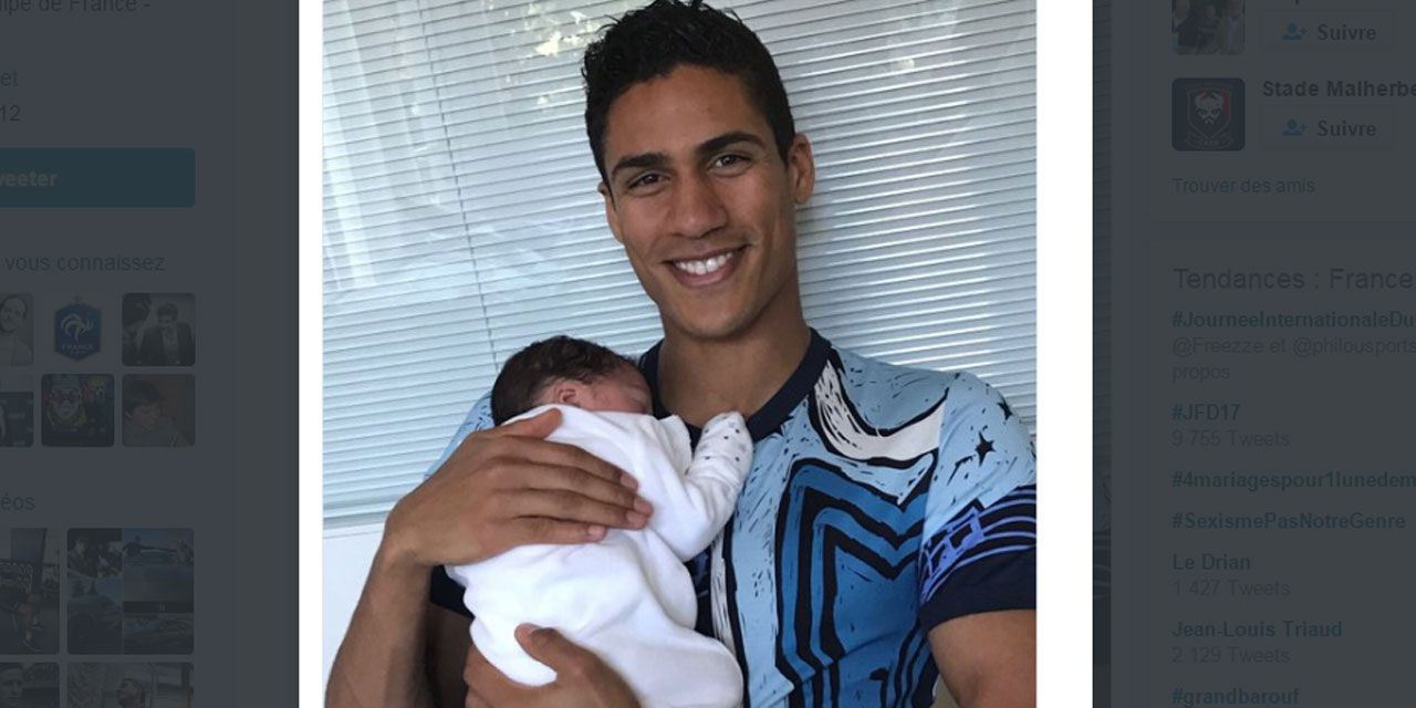 Raphaël Varane est un homme comblé. Le défenseur international français a annoncé jeudi la naissance de son premier enfant, un garçon, diffusant une photo du nouveau-né sur son compte Twitter. "Mon fils" a écrit le joueur du Real Madrid, accompagnant son message d'un cœur et de la date de naissance de l'enfant, le 9 mars 2017, sans préciser son prénom.