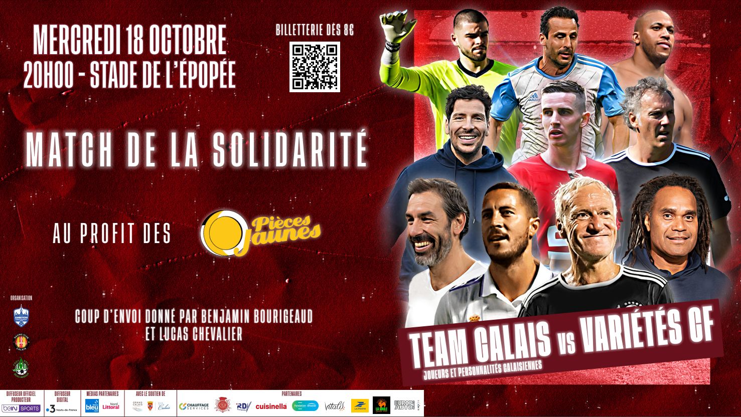 La TEAM CALAIS sera composée d’anciens joueurs et personnalités calaisiennes qui feront face au Variétés Club de France. Benjamin Bourigeaud (Stade Rennais) et Lucas Chevalier (LOSC), tous deux calaisiens de naissance donneront le coup d’envoi du match arbitré par Patrick Lhermite.