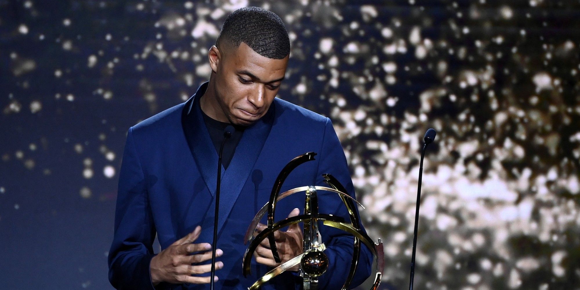 À 22h48, Thierry Henry met fin au faux suspense : "Le meilleur joueur de Ligue 1 Uber Eats est Kylian Mbappé du Paris-Saint-Germain." Le champion du monde de 23 ans a reçu le prix de meilleur joueur de Ligue 1 pour la troisième fois, et peut-être donc pour la dernière fois, car Kylian Mbappé est en fin de contrat avec le PSG. De nouveau, tel un scénariste hollywoodien, il a prolongé le suspense sur son avenir : "J'ai insisté pour venir, pour participer à la grande fête du football français, pas pour m'approprier la gloire."