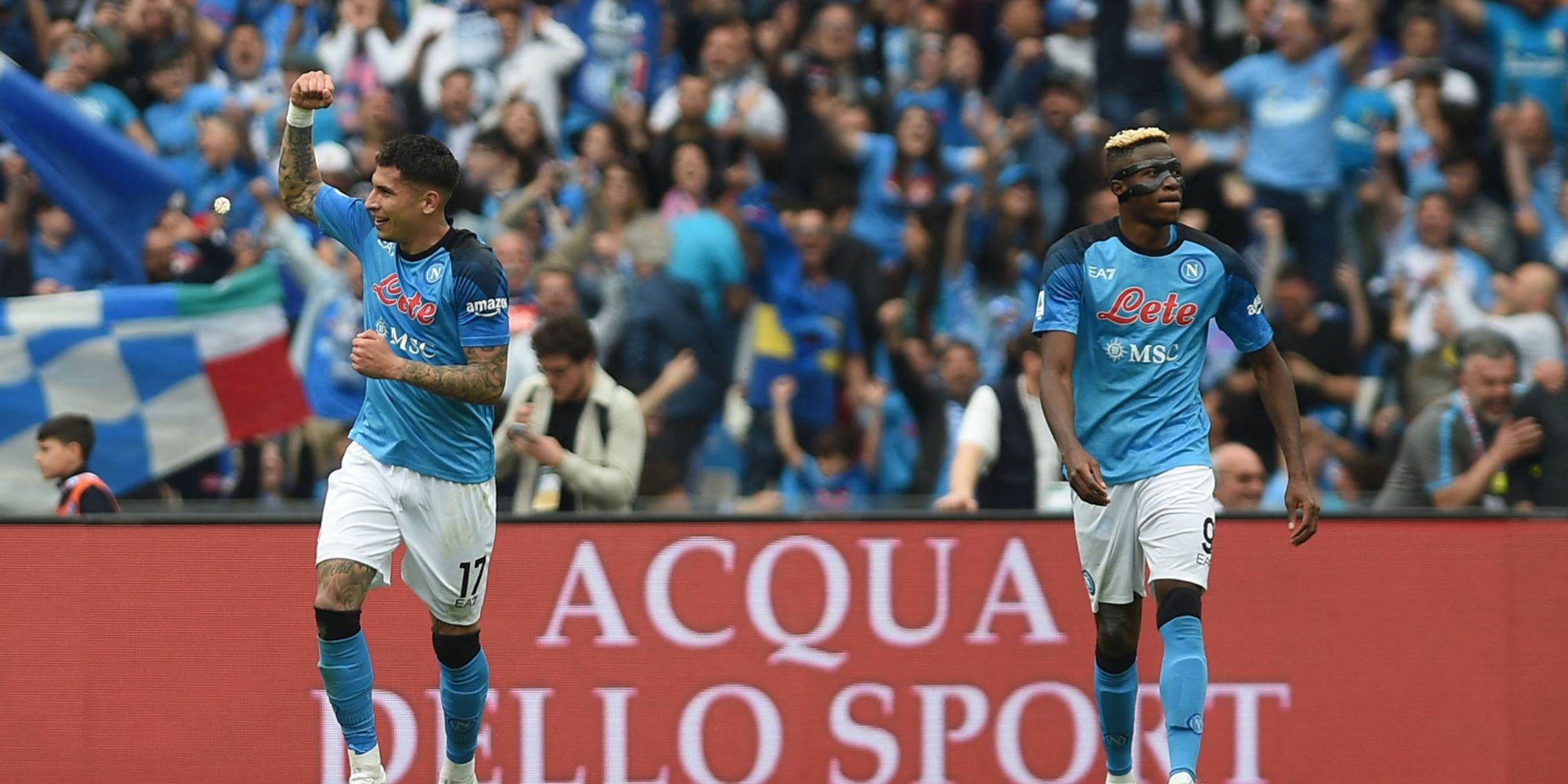 Naples a ensuite essayé de pousser, mais avec moins de vitesse et moins de précision dans son jeu. Khvicha Kvaratskhelia aurait peut-être pu obtenir un penalty (21e) et Osimhen a fait peser le danger de la tête (24e, 32e). Il a fallu attendre la reprise pour que la libération n'arrive, comme souvent grâce à Osimhen, à point nommé pour reprendre un ballon renvoyé par la défense adverse sur un corner (52e). Le Nigérian, meilleur buteur de Serie A, n'oubliera pas le 22e but de sa saison immense, fêté comme d'habitude en retirant son masque de protection pour aller cueillir l'ovation des supporters napolitains en délire.
