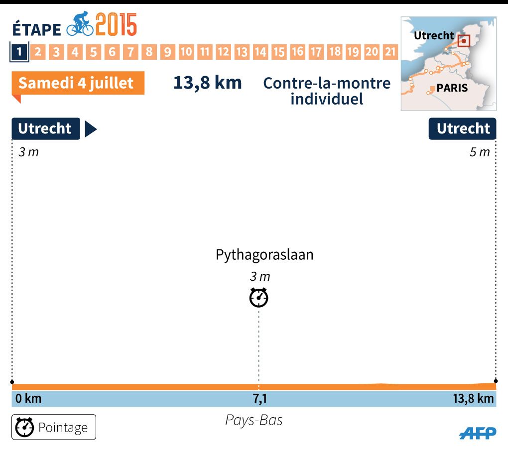 Le Tour de France 2015 s'élance samedi d'Utrecht, aux Pays-Bas. Au menu des coureurs pour ce premier jour : un contre-la-montre individuel de 13,8 kilomètres dans les rues de la ville.