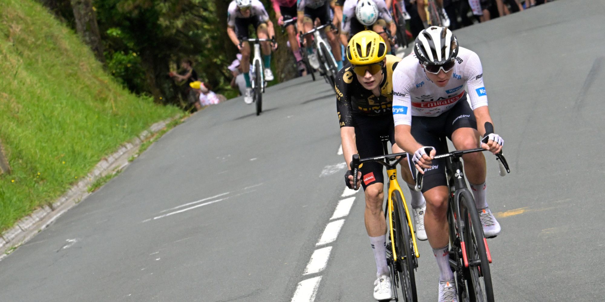Il n'empêche qu'on l'avait rarement vu autant à la peine que mercredi sur les pentes de Marie Blanque. Décroché dès la première giclette de son rival danois, il a traîné sa misère jusqu'en haut du col, avant de basculer dans la descente jusqu'à Laruns avec l'Américain Sepp Kuss, le sherpa de Vingegaard, accroché à sa roue comme une sangsue.