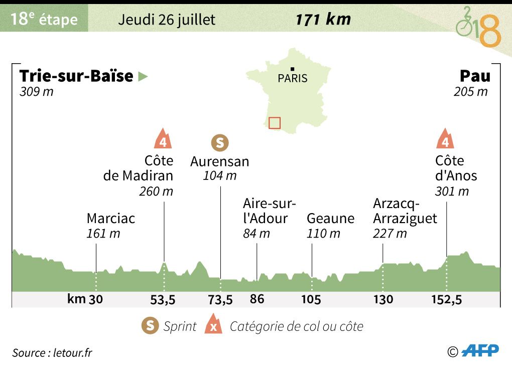Tour de France : découvrez le parcours de la 18ème étape entre Trie-sur-Baïse et Pau