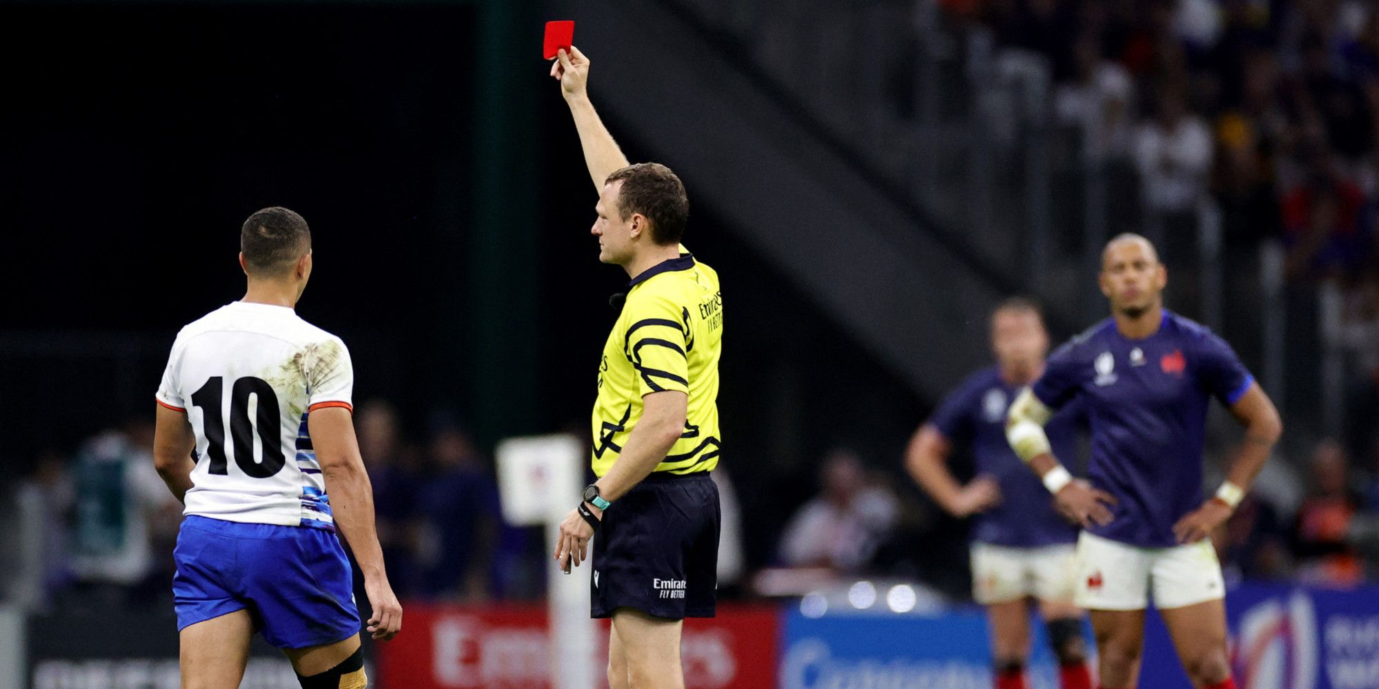 "J'ai parlé avec le sélectionneur Fabien Galthié immédiatement après le match et j'ai envoyé mes meilleurs vœux et mes excuses à Antoine, à titre personnel et par l'intermédiaire du médecin de l'équipe de France. C'est un grand joueur et une personnalité formidable et je lui souhaite un prompt rétablissement", a ajouté le trois-quarts centre namibien. À la suite de plaquage haut, à la 46e minute du match France - Namibie (score final 96-0) , l'ancien joueur de Colomiers (ProD2) avait écopé d'un carton jaune, transformé en rouge par le corps arbitral.
